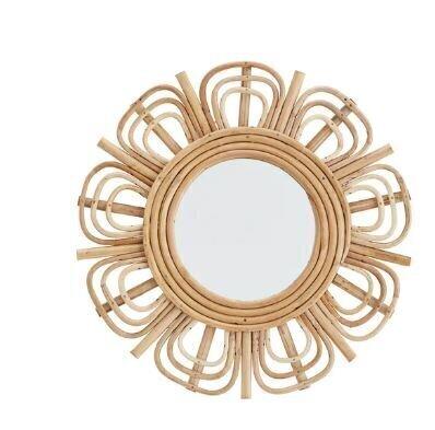 Handmade Rattan Floral Mirror, Living Room Décor Mirror, Rattan Wall Mirror, Rattan Flower Mirror, Style Wall Décor Mirror. Wall Decoration Mirror