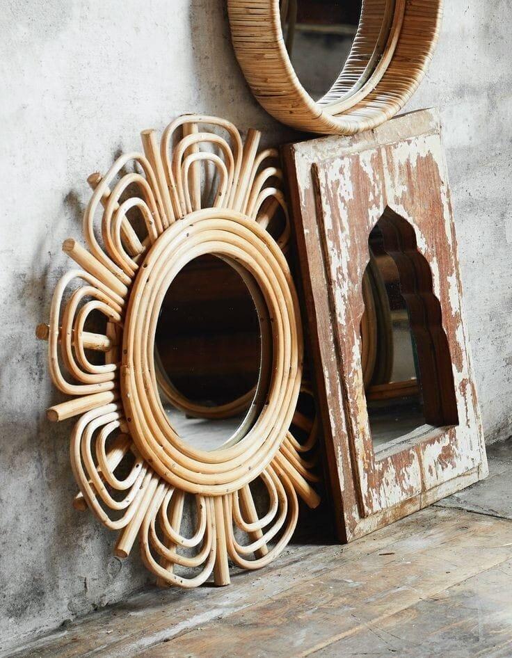Handmade Mirror on the Wall Great for adding a decorative touch to your home, office, hotel and so on A small amount of hand-made rattan cane mirrors that are natural, trendy, unique, and emotional are in stock. On the dressing table, on the wall of the living room, at the entrance, at the cafe, on the wall, or slightly leaning against the wall, it is an attractive Kane Ratan mirror that attracts attention no matter where it is placed. The inside of the frame is surrounded by bamboo, crafted using the cane webbing technique, Perfect home ornament rattan woven mirror is suitable for all countertops and it is very suitable for your interior decoration.