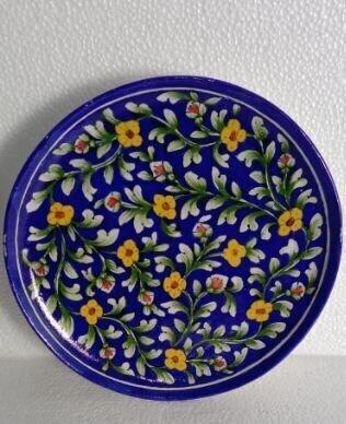 Designer Hand-Painted Jaipur Blue Pottery Plate - Intricate Artistry, Unique Patterns, Stunning Home Decor Accent