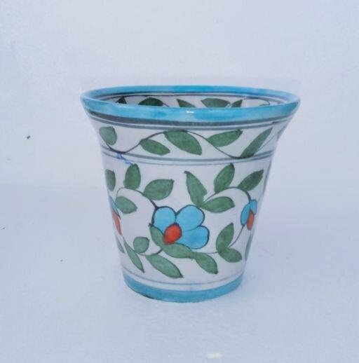 • Handcrafted Blue Pottery Decorative planter with traditional motifs.