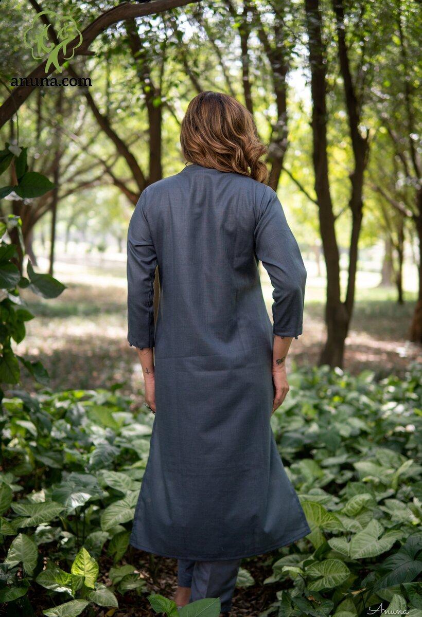 Our Traditional Embroidered Chikankari & Muqaish Work Kurta Pant Set is a testament to timeless beauty. The kurta features intricate chikankari work, carefully handcrafted by skilled artisans, adding a touch of elegance to your ensemble. The mukaish work further enhances the charm and creates a subtle shimmer effect. Made from high-quality polycotton fabric, this set ensures optimum comfort while showcasing the richness of traditional craftsmanship. The round neck design and full sleeves lend a graceful appeal to the overall look. The straight-cut silhouette flatters every body type, making you feel confident and beautiful. This kurta pant set is perfect for festive wear, weddings, and cultural events. It comes in a sophisticated grey color, symbolizing sophistication and versatility. The set includes a kurta and pants without a dupatta, allowing you to style it according to your preference.