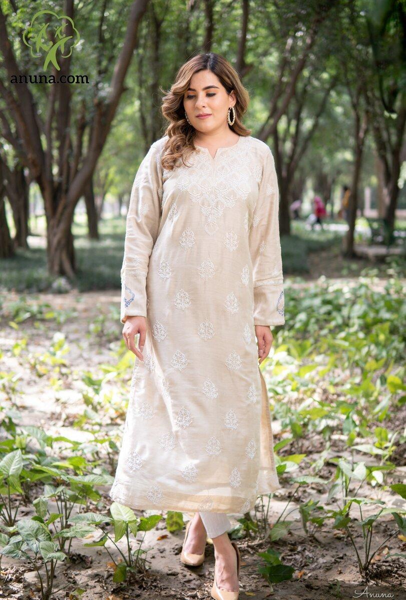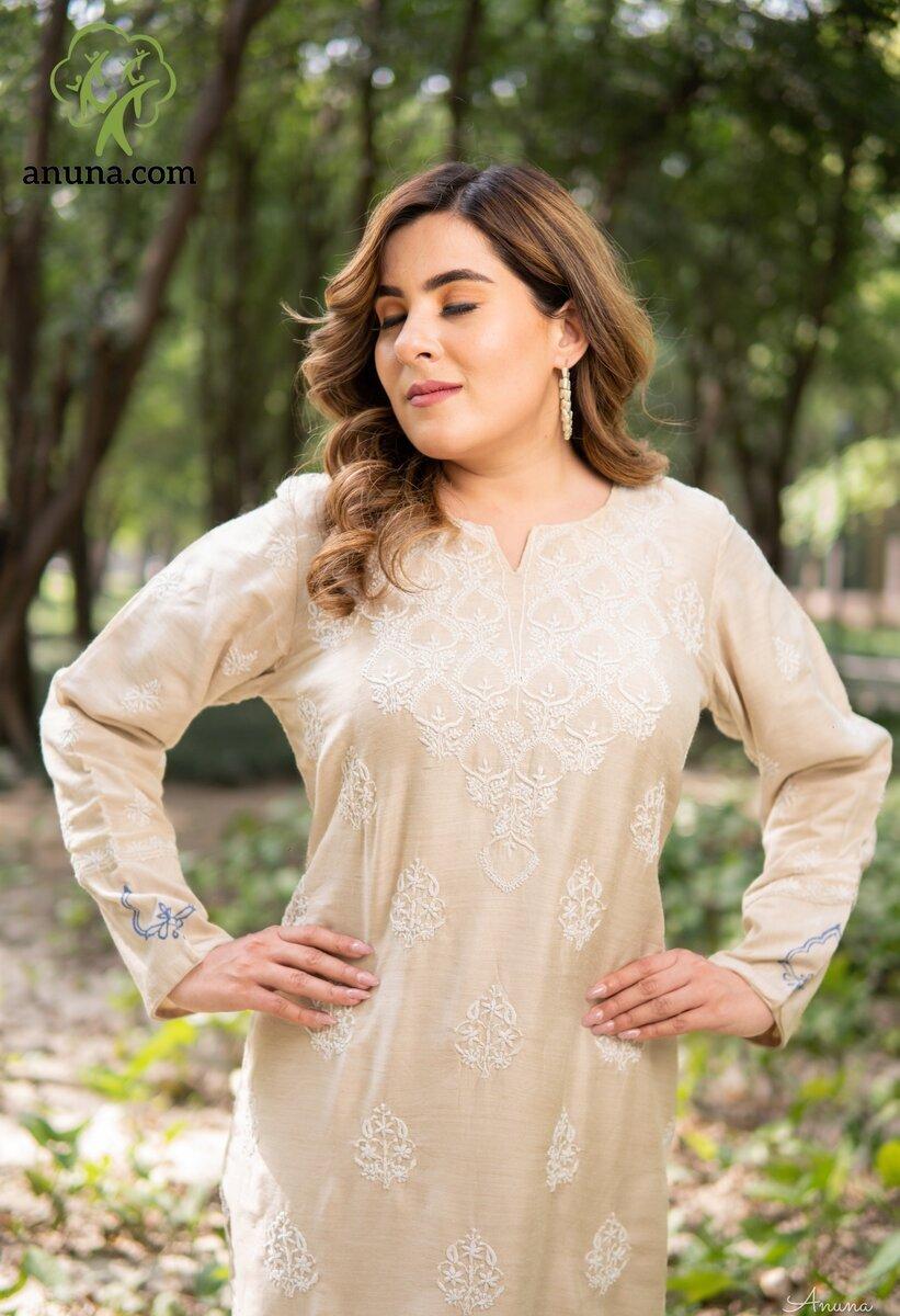 Content: Hello, fashionistas! We are thrilled to present our latest creation, the Lucknow Chikankari Hand Embroidery Kurti in sophisticated Beige color. Get ready to embrace the charm and elegance of Chikankari work, perfect for your festive and party wear needs.