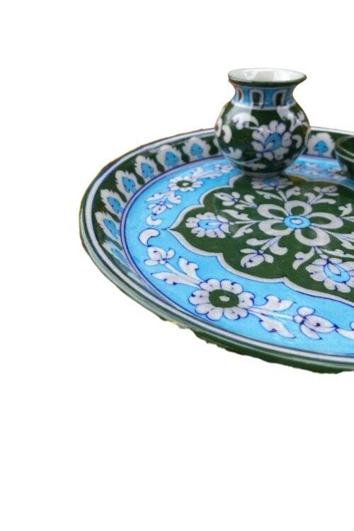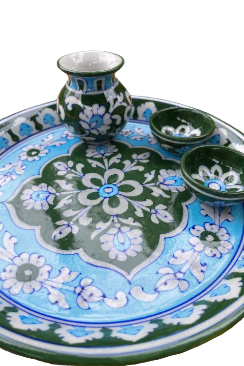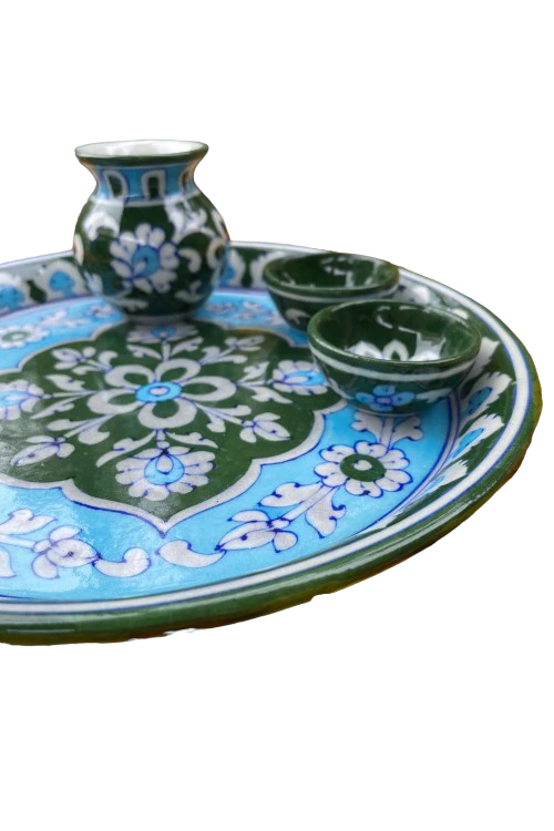 Elevate Your Pooja Rituals with the Artistic Blue Pottery Handcrafted Pooja Thali Discover the Exquisite Charm of Blue Pottery: Handcrafted Beauty for Your Home