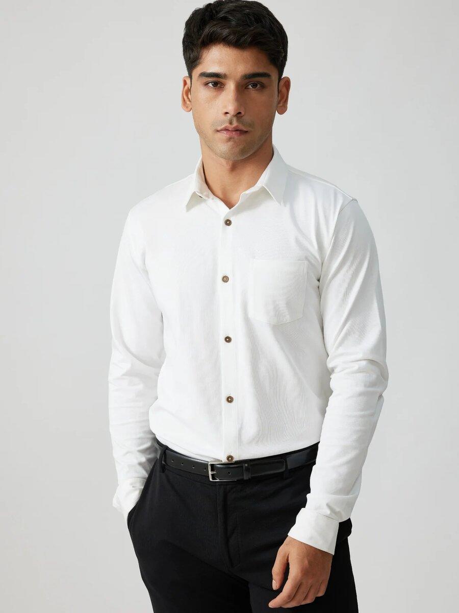 Supima Jersey Shirt White Colour Supima Cotton Fabric Shirt | Coller Neck Regular Fit Full Sleeve Men's Formal Shirts