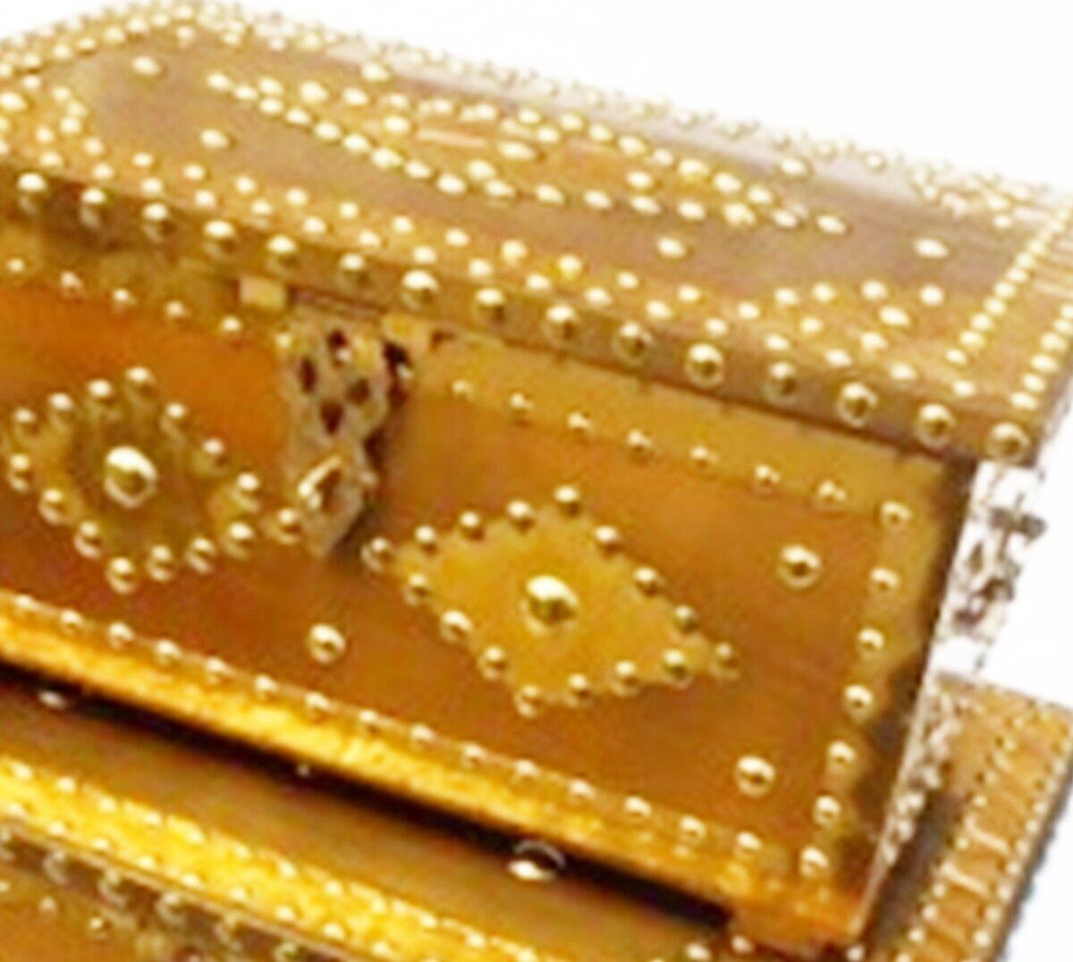This handcrafted wooden vanity box is made of strong and sturdy wooden material with brass art decoration. There is a mirror fixed inside to use while sporting the jewelry pieces. This vanity box is a good choice for women to store their cosmetic materials. It can be a perfect gift for birthdays, anniversary, wedding, Christmas, friends, New Year, Mother's Day, Friendship Day, Valentine's Day, and other occasions. Enhance the decor of any table with this elegant vanity box.