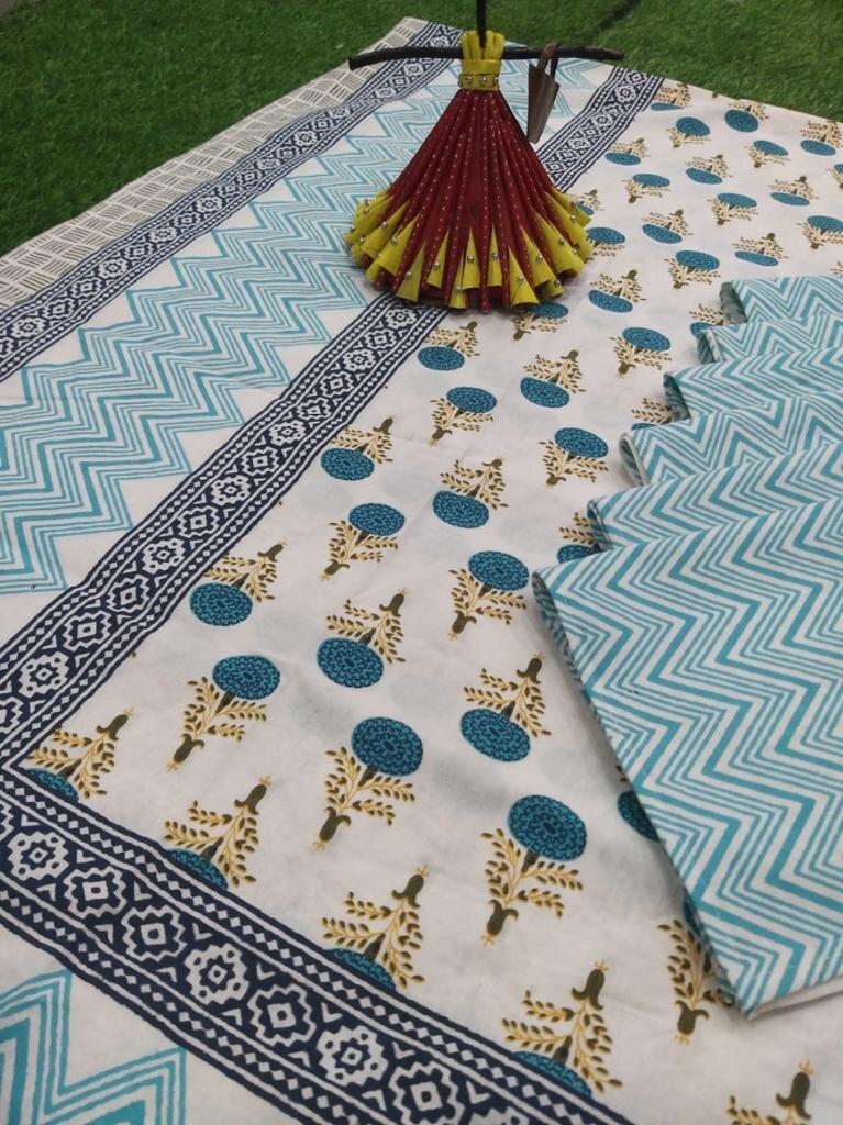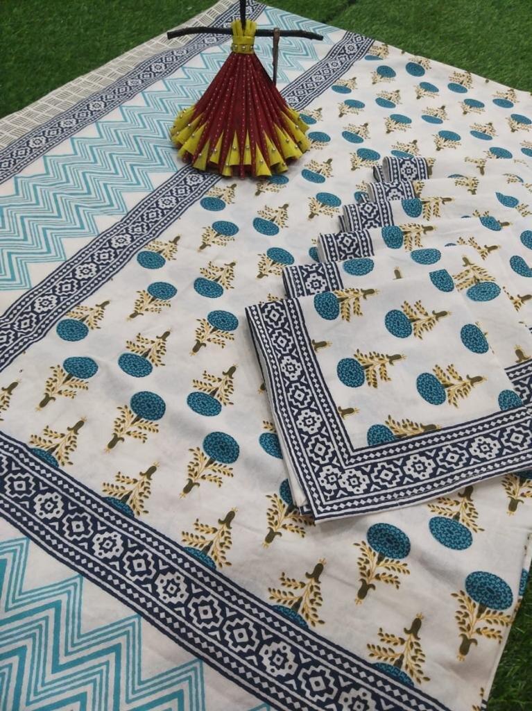 Handmade Jaipuri Floral Design Pure Cotton Table Placemats and Napkins Set of 7 Block Printed