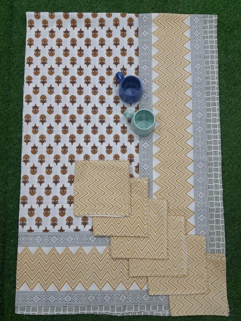 Jaipuri Printed 6 Seater Dining Table Cover with Napkins / Block Printed Booti Design Pure Cotton Table placemat