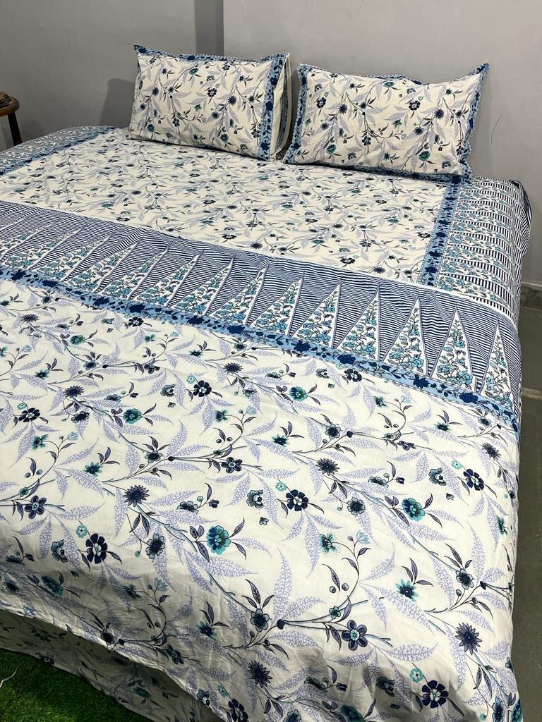 Handmade Jaipuri Block Print Double Bedsheet + Pillow Cover With Dohar Combo Set | Floral Print Double Cotton Bed Sheet