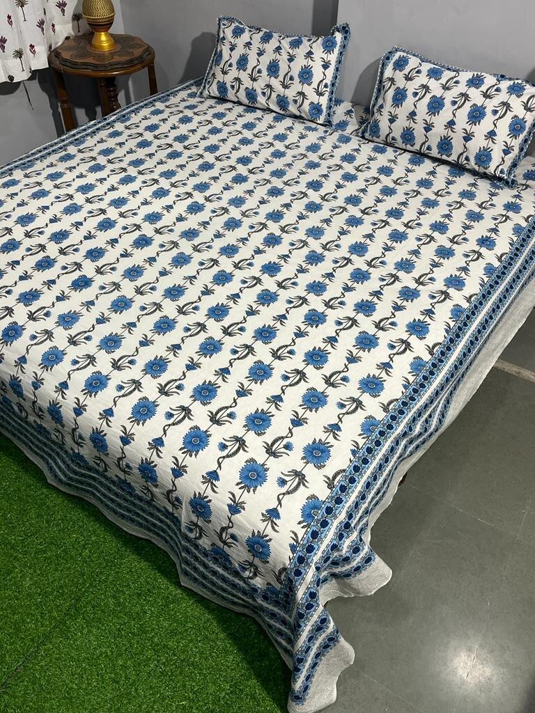 Indian Handmade Jaipuri hand block king size Pure Cotton bed sheets in Multi Patterns for Bedroom Decor