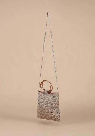 A handy accessory to match your everyday outfits, this crochet handbag features a braided crossbody sling and a trendy pair of ring handles!