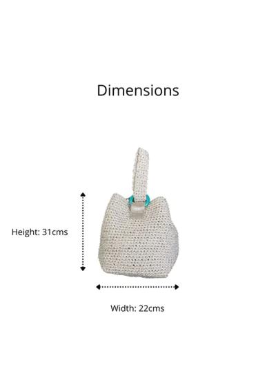 A handheld crochet bag that comes with a turquoise ring and faux leather detailing to create an interesting look. This glistening handheld bag is just what you need to carry to your next special occasion.