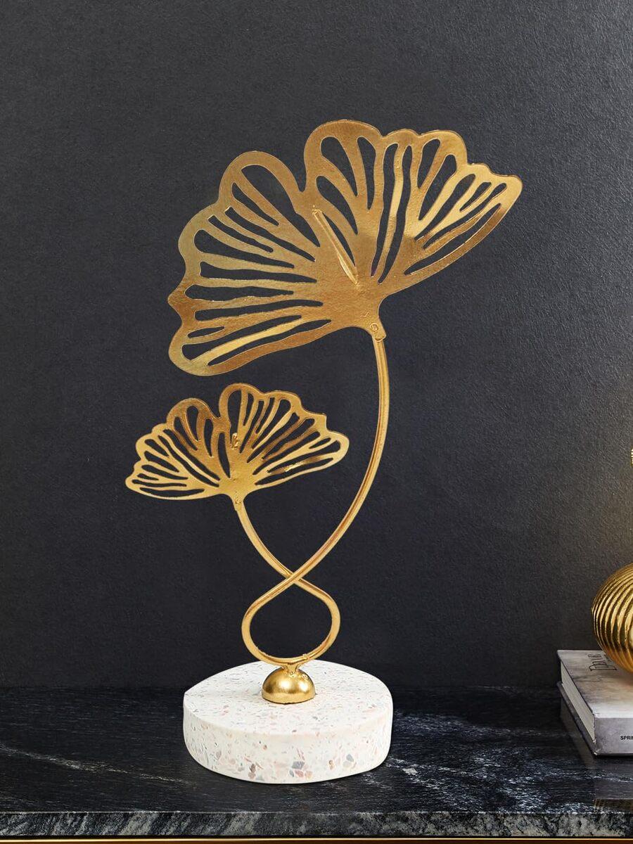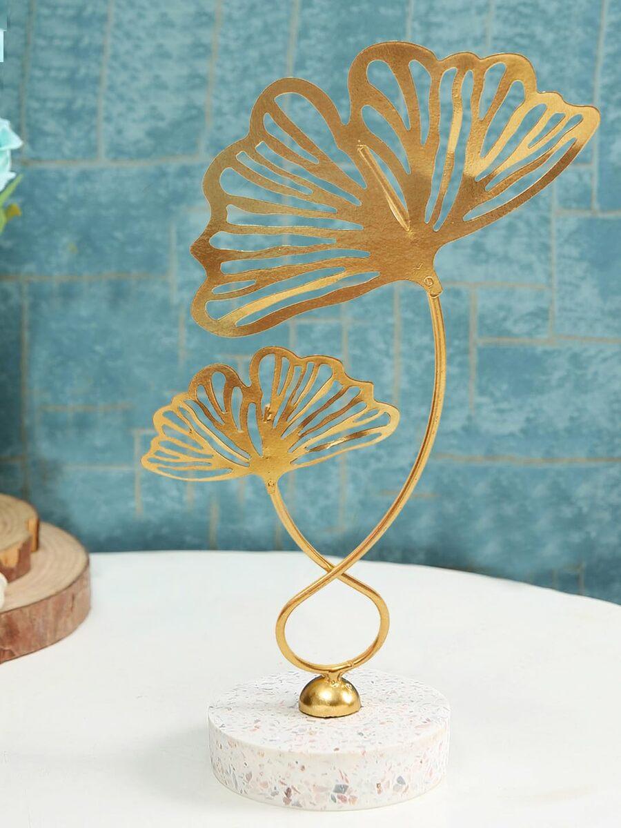 Decorative Metal Leaf Table Decor Showpiece (Gold, 24.1 cm x 7.6 cm) for Home Decor Living Room Bedroom Office Centerpiece Gifting Decoration Items