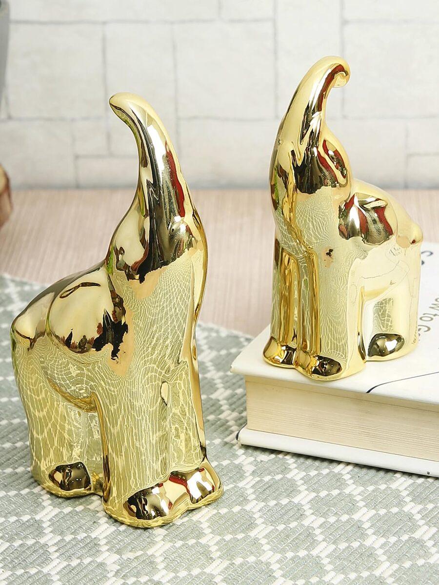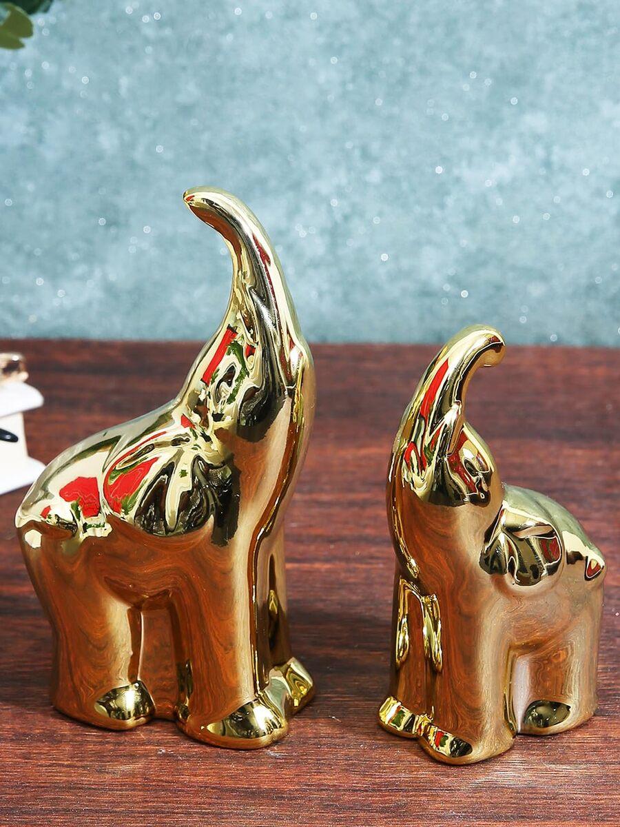 Elephant Showpiece Figurine which can be used in your living room, Bedrooms and also you can give it as a Gift to someone special. These uniquely hand-crafted and painted showpieces make an excellent complement to any home/office decor. Can be placed on a table, dining table decor, countertop, shelf, or floor.Perfect for dining rooms, living rooms, family rooms, bedrooms, study rooms, kitchens, offices, or conference rooms.A great gift for a wedding, or housewarming.