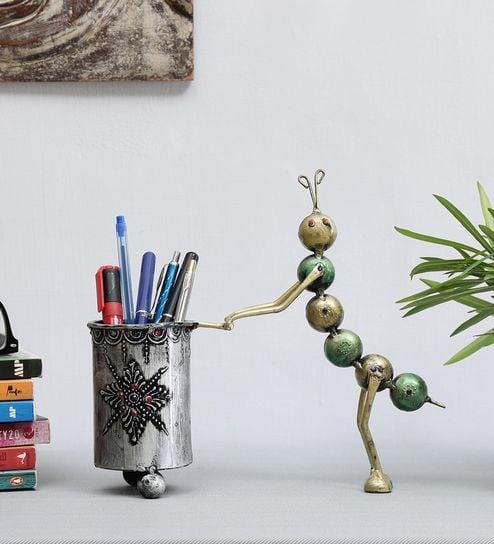 Caterpillar Pen Stand | Vintage Showpiece for Home Decor | Desk Organizer for Home, Office Library Decorations | Vintage Home Decor, Modern Home Decor