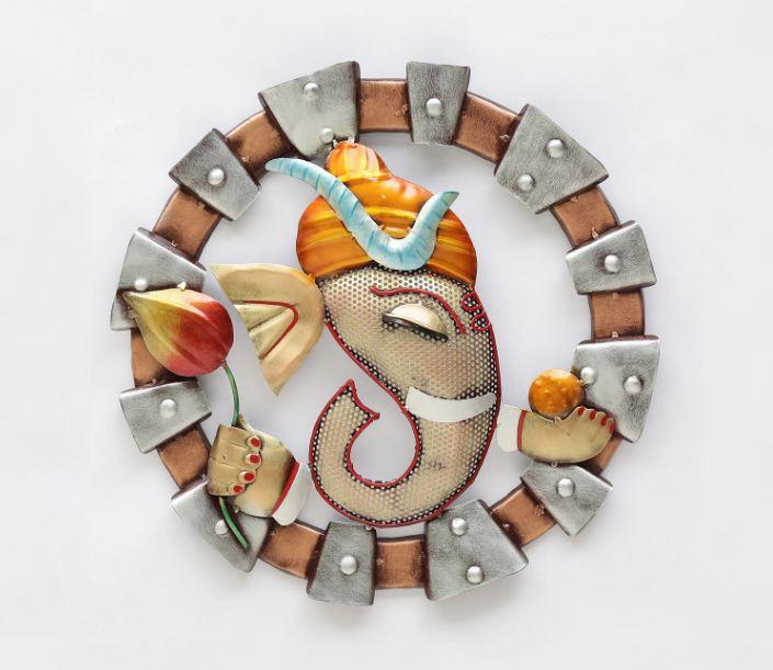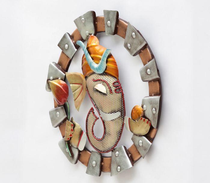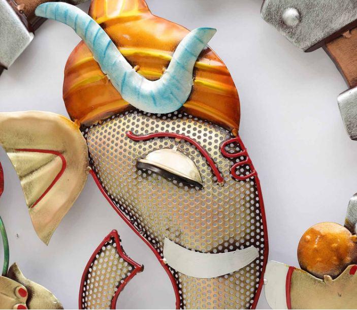 It's crafted from iron metal. It can be hung easily with the included mounting hardware to add a unique style to your home. This Indoor/Outdoor Metal Wall Decor makes a huge impact with its generous size, colors, and abundant finish this is beautifully crafted with the best attractive look. You can decorate your home or office by finding something unique with ordinary things. This product is antique and durable. You can get a wide range of home decor items here, that make you feel close to the Indian culture. This is a beautiful decorative design wall art that provides a unique and vintage look to your home, office, temple, and room. Perfect gift for any festival occasion and can also be used to decorate the home, living room, bedroom, Dining Room, Hotel, Restaurant, Office Corporate Gift, Marriage Anniversary Gift, or wedding Gift.