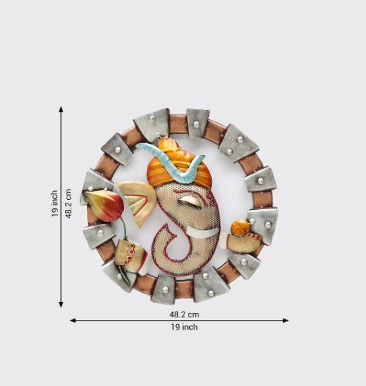 Iron Metal Handmade Decorative Wall Hanging Ganesha with Lotus Religious Frame Wall Decor for Temples, Home, Offices, Cafe