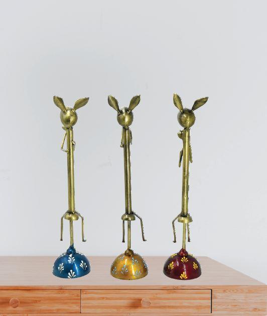 Handmade Decorative set of 3 Rabbits Musician Statue, Vintage Home Decor, Modern Home Decor