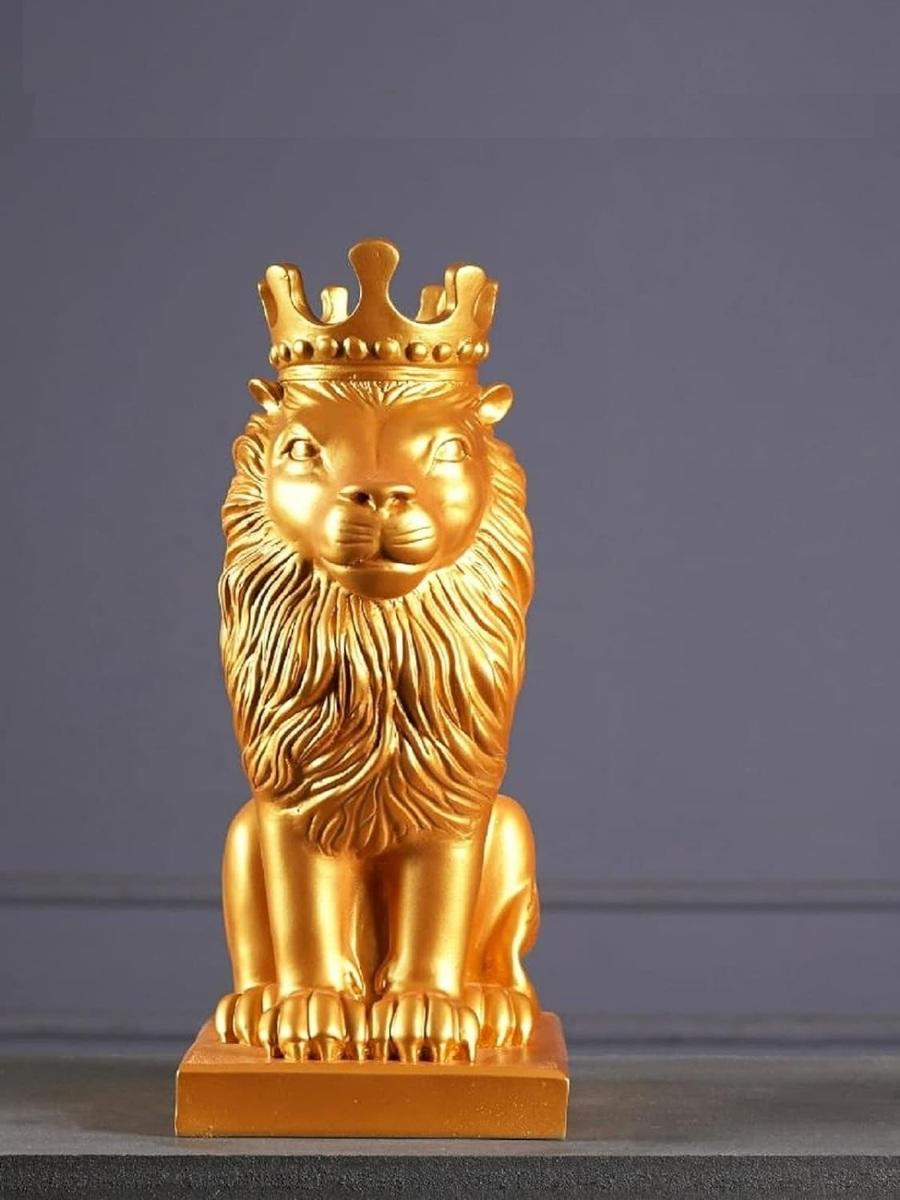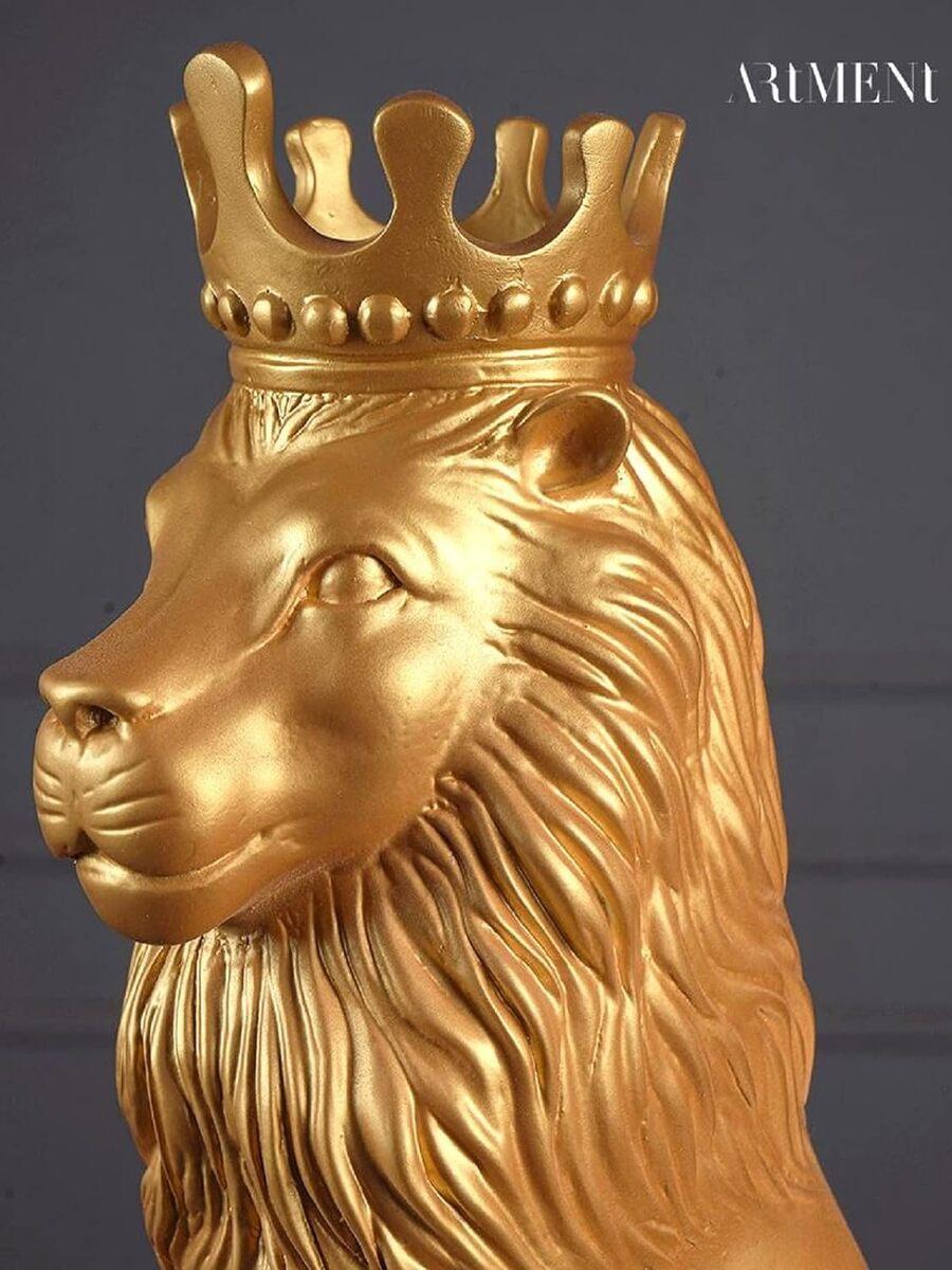 The Royal Golden Lion King head statue with a crown is made of resin, non-toxic and strong. Tall sitting lion king statue with a crown. Each Lion King statue for home decor is carefully carved and handmade by experienced masters. Wipe gently Lion King statue black and gold home decor with a dry or wet cloth to make it as new as usual. A true king of all animals will become the most attractive spot in your place. With fine lines, these tasteful decorations can add style to your home or office.