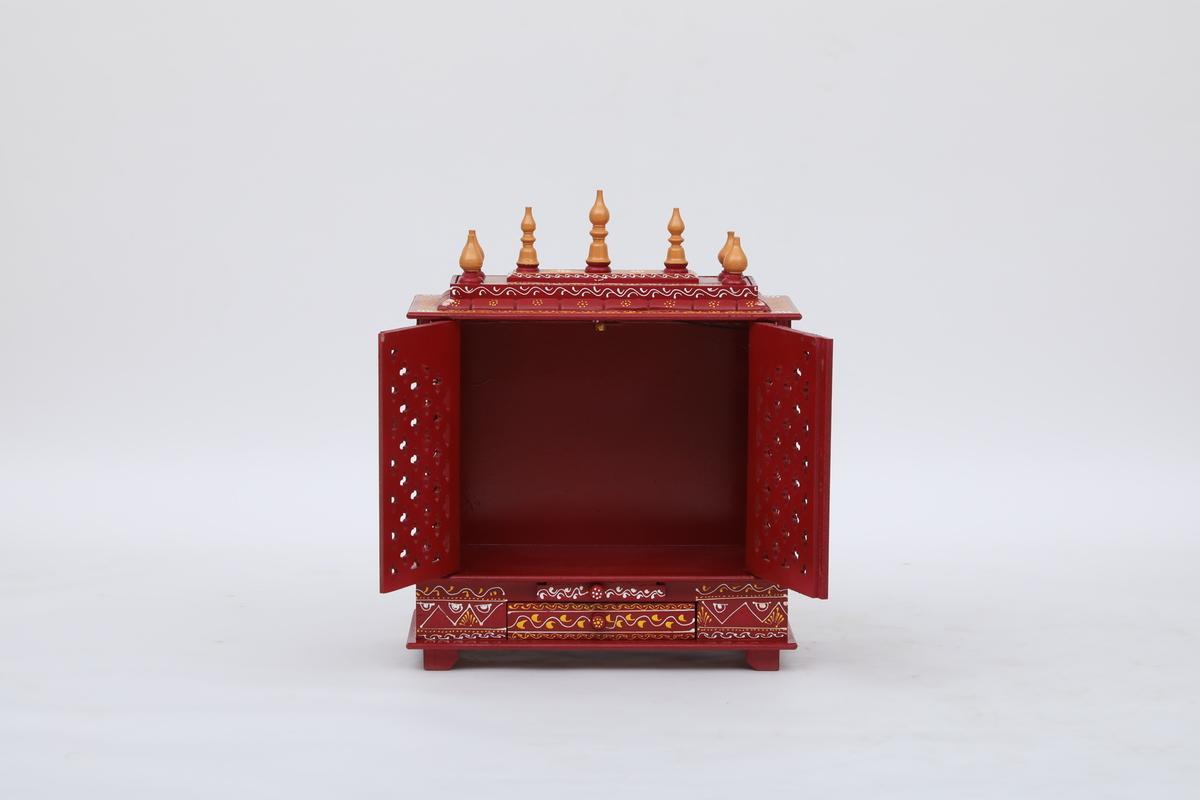 Handmade Beautiful Mango Wood & MDF Pooja Mandir for Home or Puja Temple Stand for Office and Shops with LED Light