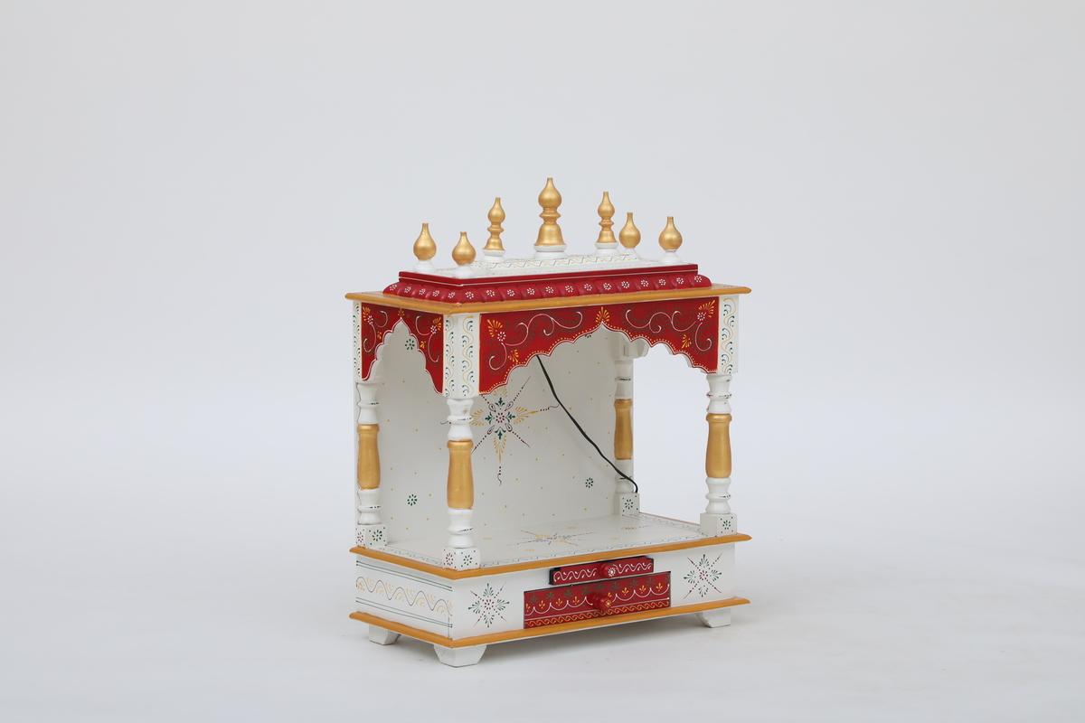 Home temple or Pooja mandir- Designed for your home with supreme quality material and artwork done by experienced artists. Select your favorite color from the available options. This item has the unique feature that it has been provided with an LED bulb inside. The wooden temple's outer size is Width: 24 Inches, Depth: 12 Inches, Height: 30 Inches. To measure with idols that you want to place inside to make sure they fit your requirements, the inner size where you place the idols of the temple is inside dimensions Width: 22 Inch, Depth: 10 Inches, Height: 16 Inches Weight:12 Kg It has one removable shelve that can be used or removed as per need for placing Pooja Idols.