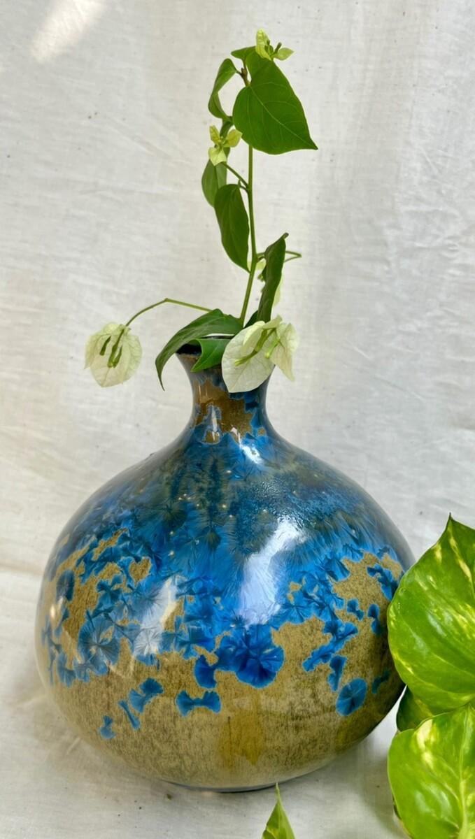 Beautiful handmade ceramics and home décor that can add a special touch to any room. An outstanding touch to your décor, place it anywhere living or bedroom. The beautiful vase that makes corners, the center of attraction, will leave your guests fascinated. A Decorative. Pottery used for Wall and Table Decoration is hand painted and designed by skilled artisans for years. This beautiful wall décor plate will enhance & give a vibrant traditional look to your home. Stoneware clay is used in making of crystalline vases. It is glazed and High-fired and goes through multiple processes. It is fired on 1220 degree Celsius that gives durability and strengthens its structure. Beautiful and stylish, fine material, smooth texture, and artistic atmosphere enhance the look of the product This product is hand-crafted and may have slight irregularities that are a natural outcome of human involvement in the process.