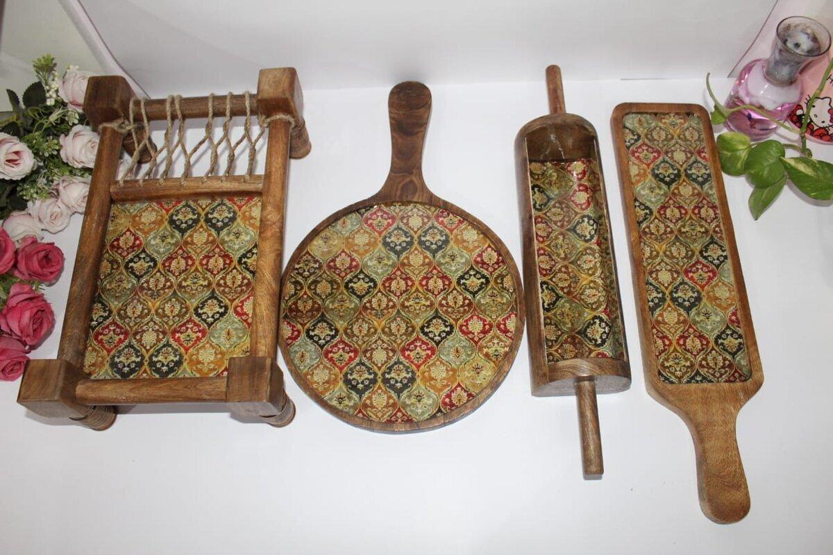 WOODEN COLOR KHAT PLATTERS, HANDMADE WOODEN PLATTER, HANDMADE PLATTER FOR TABLEWARE, DINNERWARE, SERVING PLATE SET OF 4
