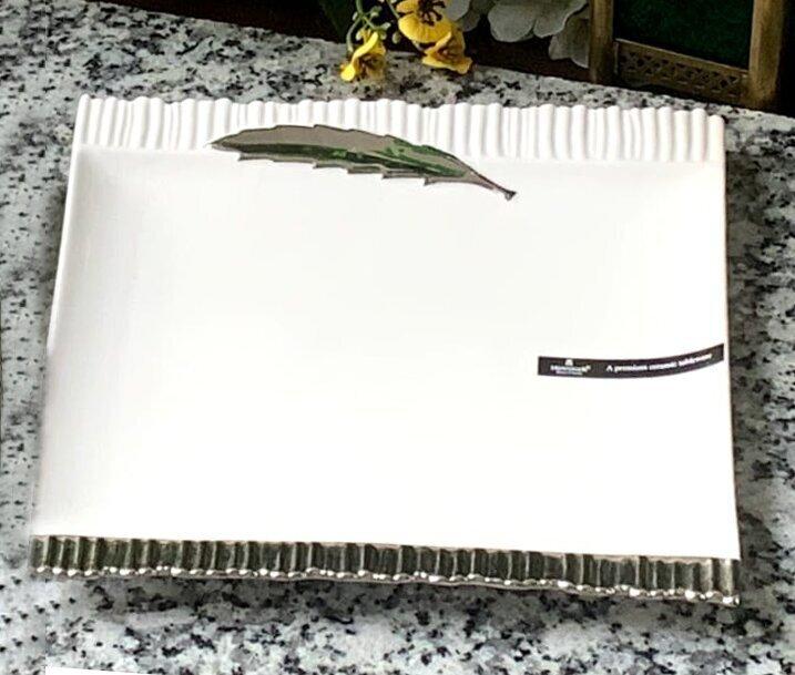 This Serving Porcelain Platter in white with silver design border will beautifully display everything you serve. The simple design will blend with your existing tableware. With superb value, our high-quality porcelain platter is sophisticated enough for entertaining yet sturdy enough for everyday dining. Offering impeccable service for your favorite foods, the white serving platter can also be filled with fresh fruit or blossoms to create an attractive centerpiece. Its clean, simple lines and shiny white color coordinate beautifully with other dinnerware and serving pieces, so you can use the platter as part of a wide variety of inviting table settings. Made of high-fired porcelain for exceptional durability, this classic piece will provide years of memorable meals. These porcelain plates are healthy for everyday use as they are bpa free, lead and cadmium free, durable, and sturdy, safe to use and maintain. Perfect for modern living in your home & kitchen during dining and entertaining elegant white glaze bringing visual pleasure to the table, match all kinds of table linens and your current white or colorful dinnerware, making it ideal for any creative food presentation, whatever the cuisine. Warm gift for family, friends or the one you loved on special day or festivals.