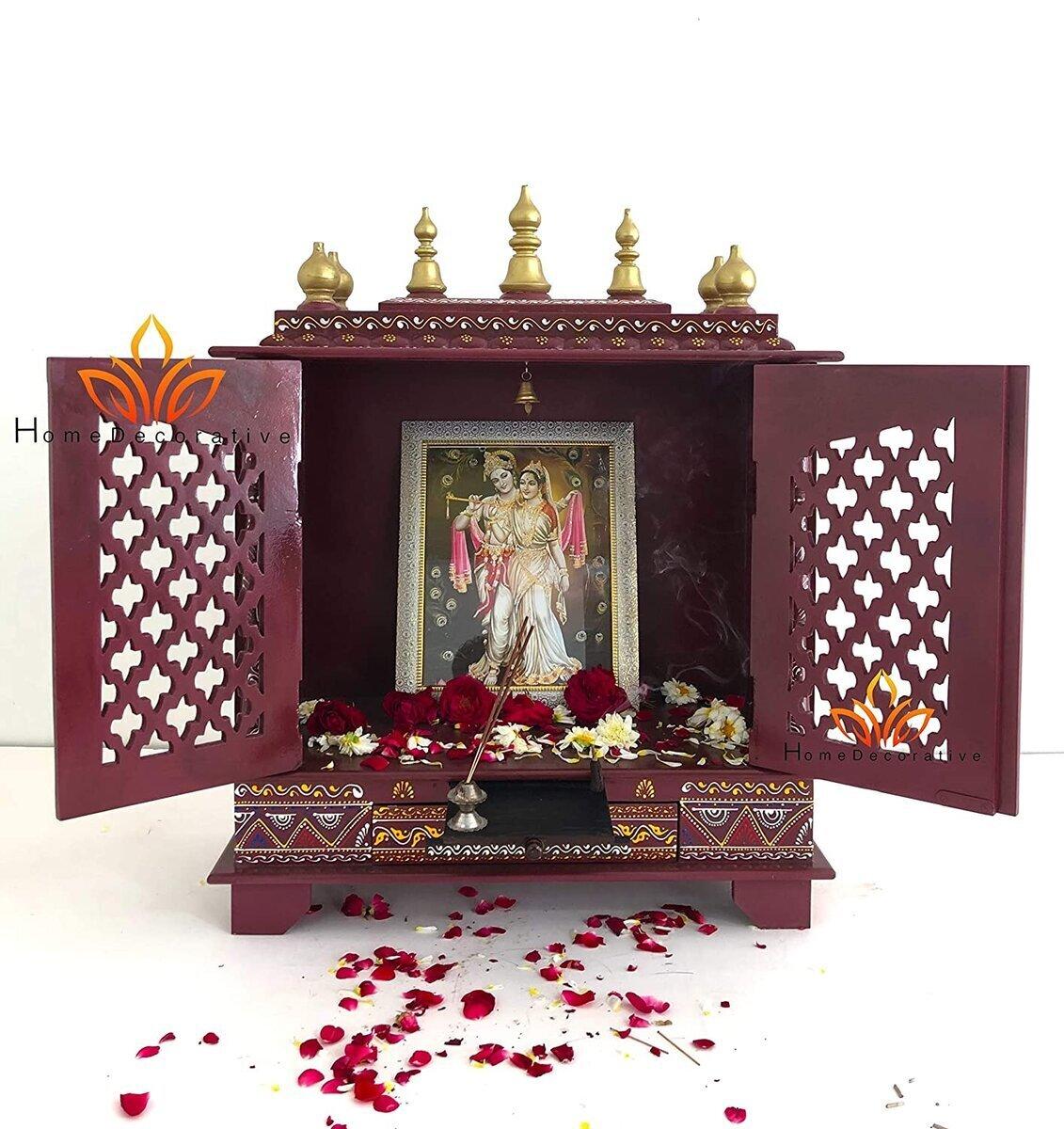 WOODEN TEMPLE Pooja MANDIR With Doors for Home, Office Prayer Room Mantap (Maroon, Large) | Shop now