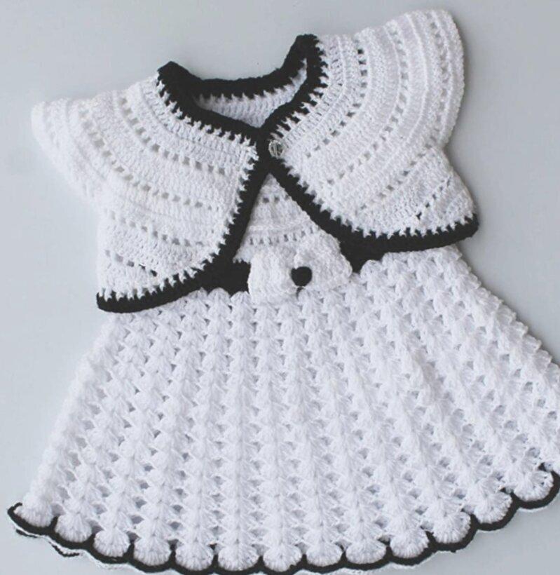 This is an exquisite piece made by crochet with 100% cotton yarn count 2/10, for your little doll. It can be worn at parties and special events. It gives a new look and personality to your baby girl. It is made by pure, soft and the best quality material. Suitable for winter/semi winter.