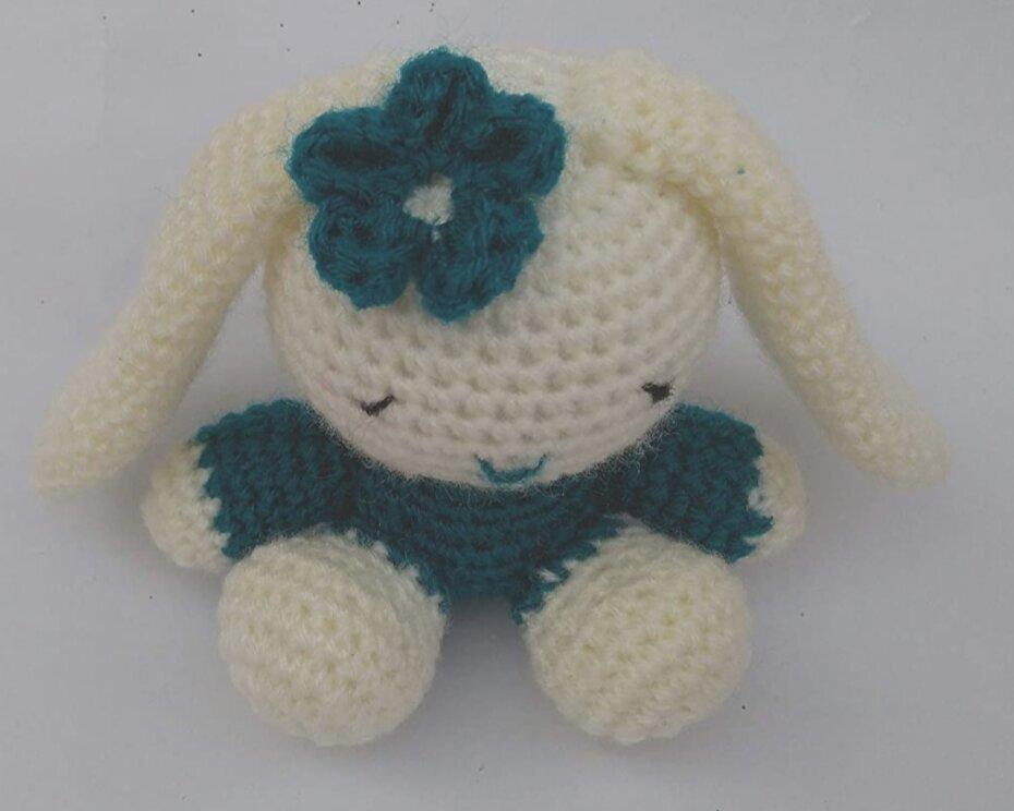 This cutie bunny is hand-made with love and care by the rural women artisan of Narsapur Lace cluster. These bunnies are very popular because they are made of hypoallergenic yarn.