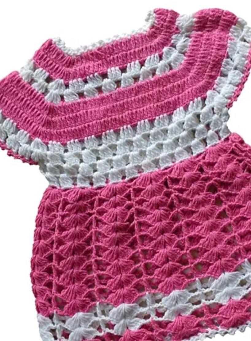 CROCHET BABY FROCK/PINK WHITE CROCHET FROCK/Hand crocheted lace frock/hand knitted baby dress