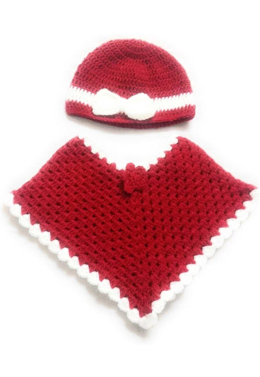 Features beautiful red color crochet poncho and a cap with funky and cool patterns for your baby girls. Suitable for winters, extremely trendy and stylish for casual outings and winter parties. The high quality yarn is used to make this poncho tops for girls, stylish as well as soft, silky and comfortable for skin.