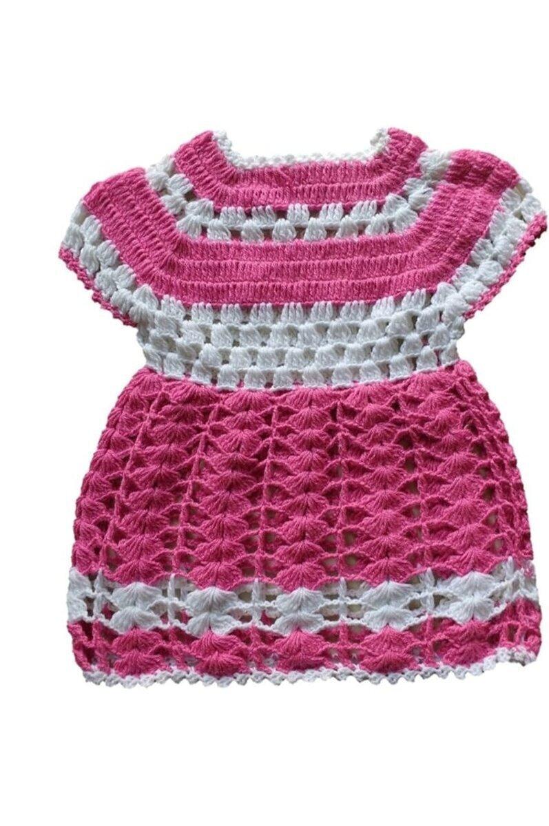 crochet baby dress, baby girl dress, pink baby dress, white pink dress, baby outfit, baby shower, candy pink baby