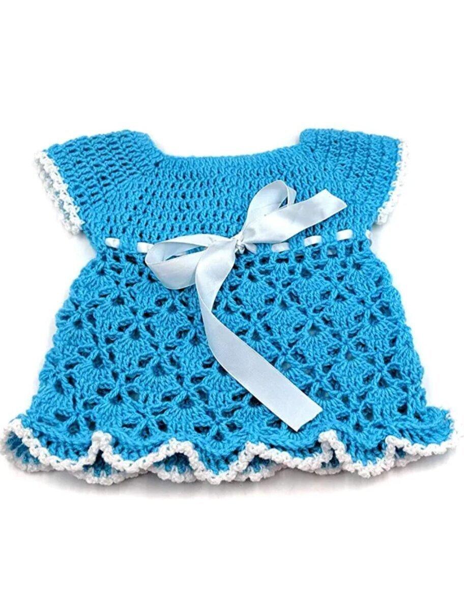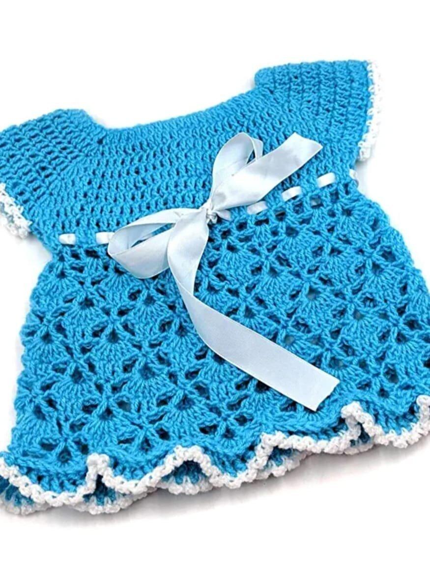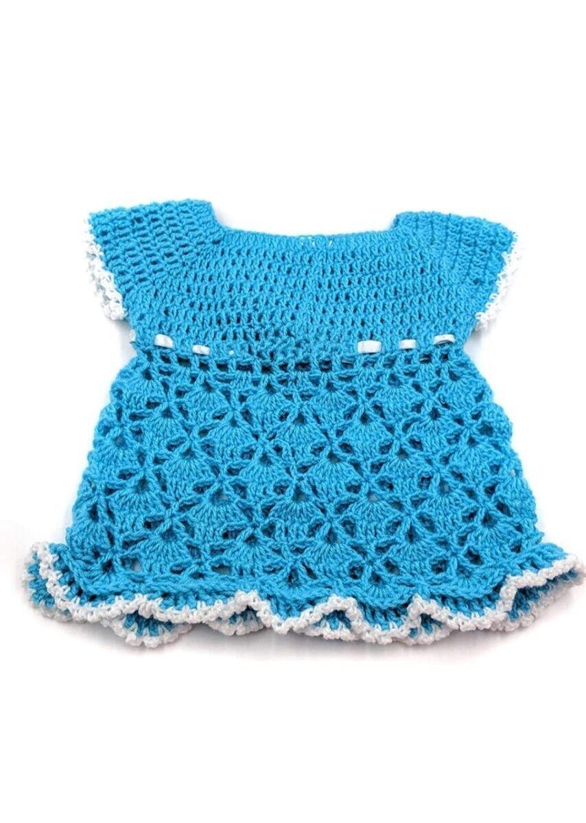 Handmade Crochet Baby Girl Frock Lace Tunic With Ribbon In Light Blue Color