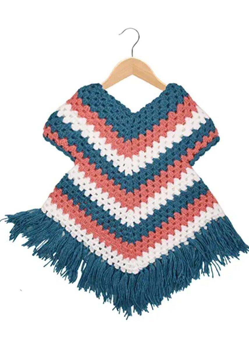Toddler Crochet Poncho Top, Crochet Kid Poncho With Fringes, Baby Girl Crocheted Poncho with cap, Knitted Poncho set, Knit Poncho Granny Square kid tops