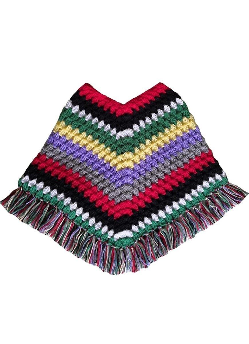 Girl's Handmade Poncho, Baby Poncho, Crocheted Poncho for Girls, Multicolor Crochet Pull Over Top
