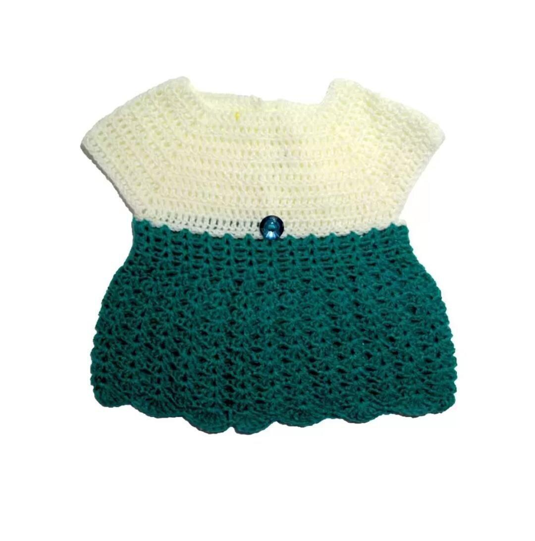 HAND CROCHETED BABY FROCK/GREEN & OFF-WHITE FROCK/DESIGNER CROCHET BABY DRESS (3-6 MONTHS)