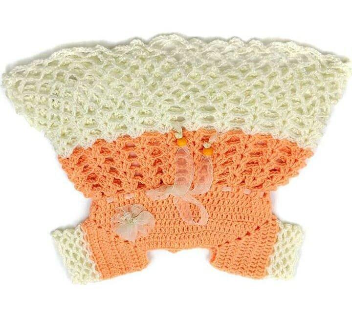 This is an exquisite piece made by crochet with 100% cotton yarn, for your little doll. It can be worn at parties and special events. It gives a new look and personality to your baby girl. It is made by pure, soft and the best quality material. Suitable for winter/semi winter.