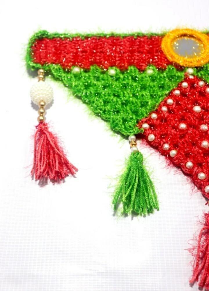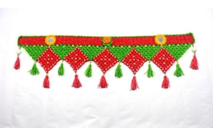 It is perfect to be tied at the entrance of home or office to keep away negative energies and bring good luck. It gives a very attractive look where ever it is hanged. Usually it is hanged outside the main entrance of the house. Design of this crochet toran is very unique & beautiful that it will add a totally new dimension to your home or office. These Torans are the first thing that welcomes your guests as they step at your place. These Torans not only enhance the charm of the main entrance of your home but also give a friendly welcome. You can decorate your sweet home forever with these stunning exclusive Torans.