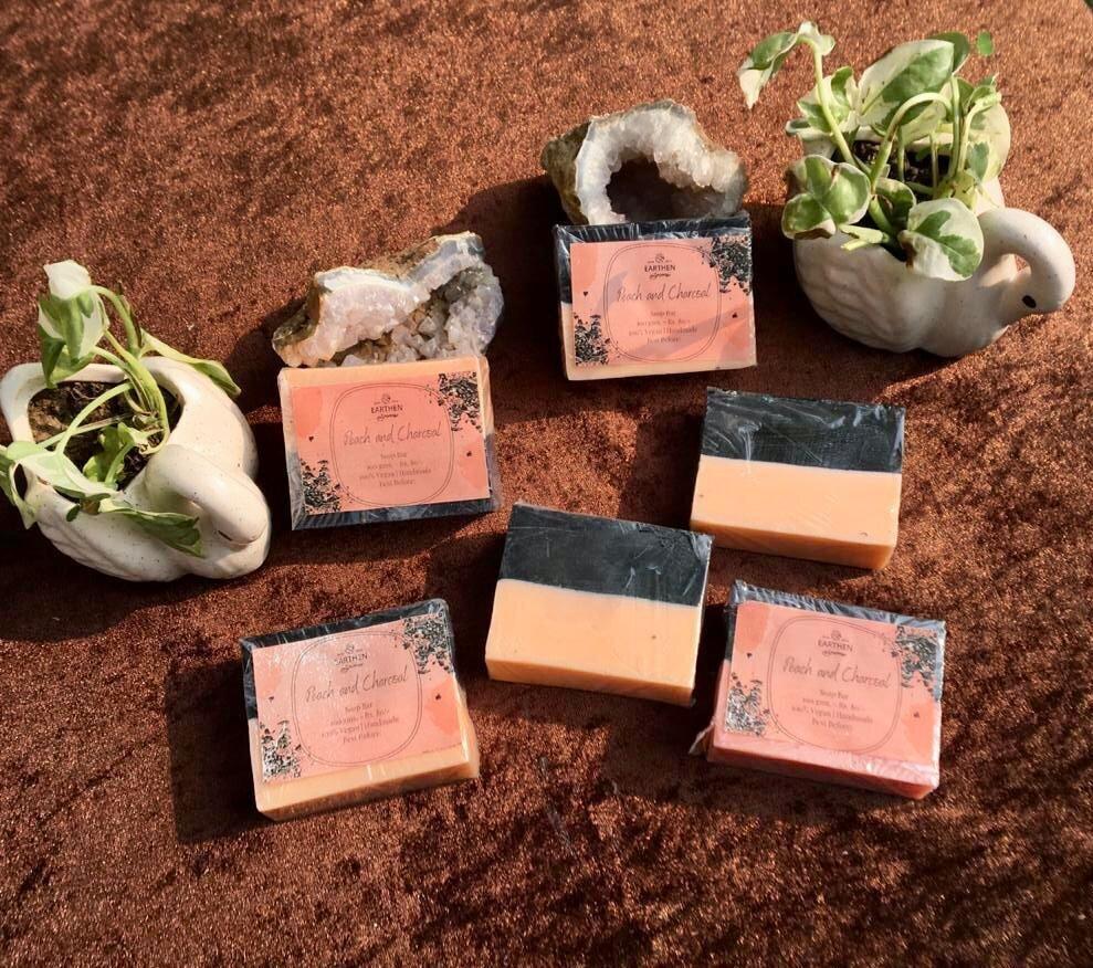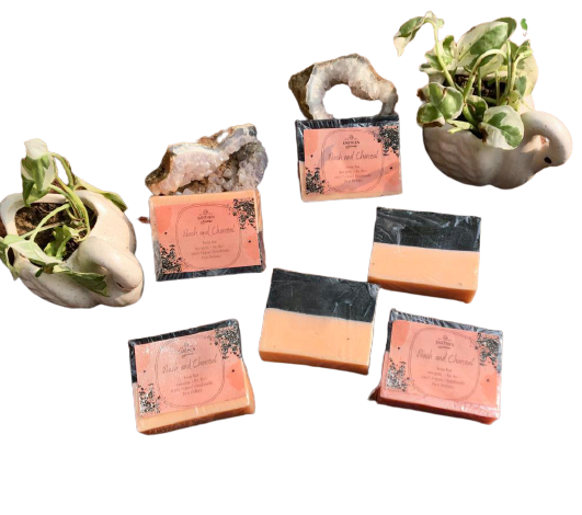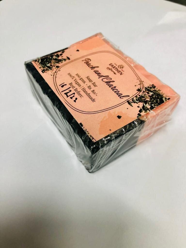 Peach mania in pure glycerin with Charcoal Soap bar Pack of 4