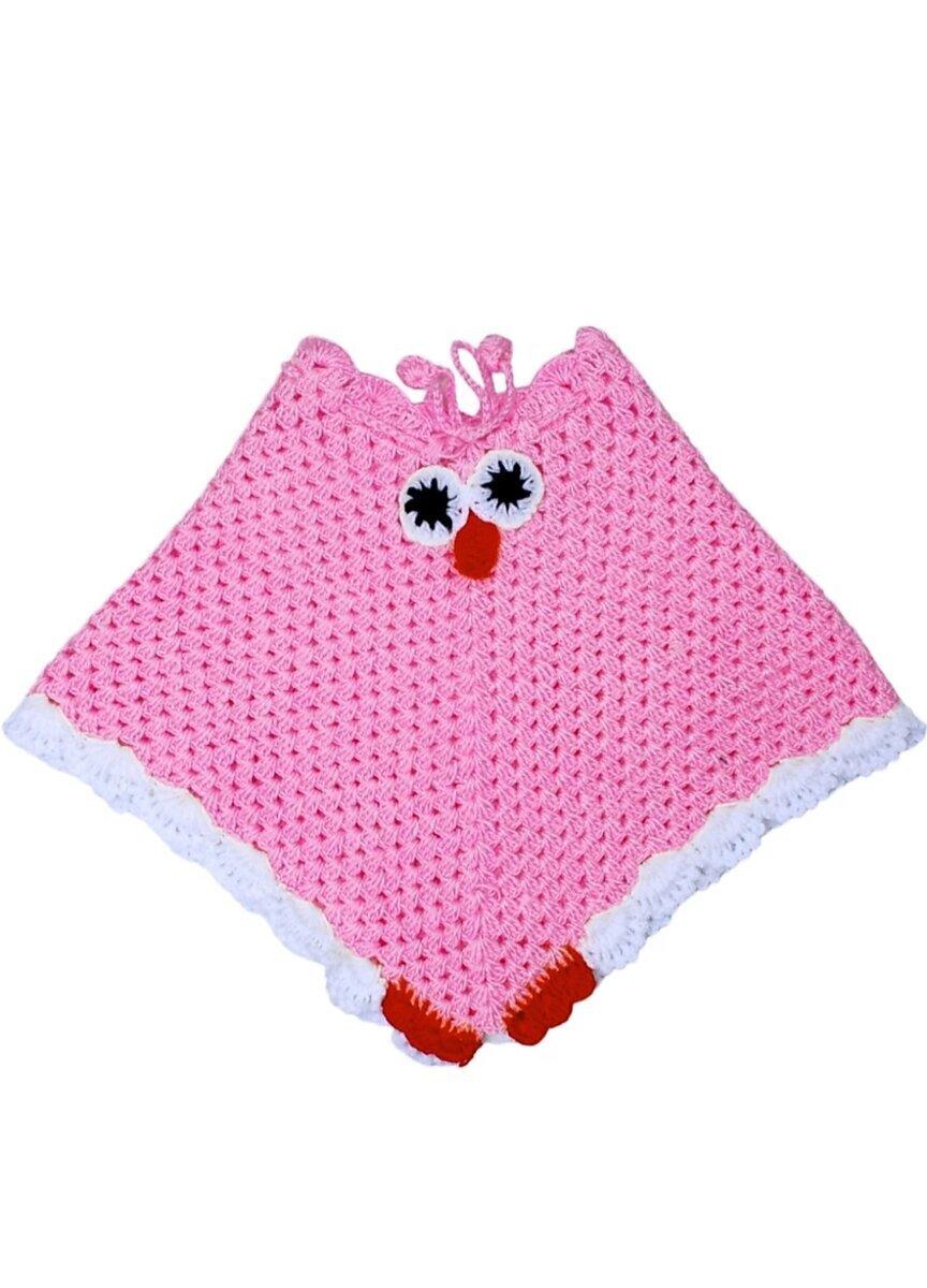 Features beautiful pink color crochet all over along with cute white colored crochet eyes and red colored crochet nose to make it look funky and cool for your baby girls. Suitable for winters, extremely trendy and stylish for casual outings and winter parties. The high quality yarn is used to make this poncho tops for girls, stylish as well as soft, silky and comfortable for skin.