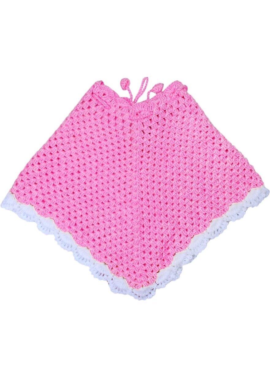 This Winter Season, an Exclusive, Elegant and Collection of Beautiful Hand Knitted 100% Cotton Crochet Poncho/Cape For Your Little Princess. The Poncho is Extremely Stylish, Soft and Comfortable. It comes in an attractive color and design, and is a perfect fit for casual outings and winter parties. Knot closure at the top ensures perfect fitting.