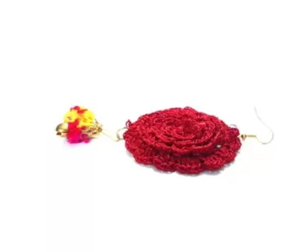 These are wonderfully trendy ohh so light weight earrings made with crochet. Look your girlie best in these vibrant pair. Completely hand made in crochet lace pattern with uttermost dedication and love.