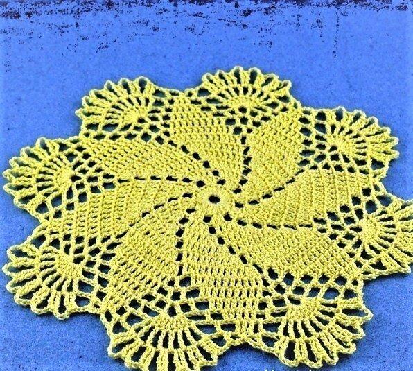 New hand-crocheted yellow doily. This beautiful, lacy doily would be an elegant centerpiece, a lovely accent for your home. This special material is strong and durable. You can see how the thread has a beautiful appearance, higher luster, deeper color penetration, and color retention.