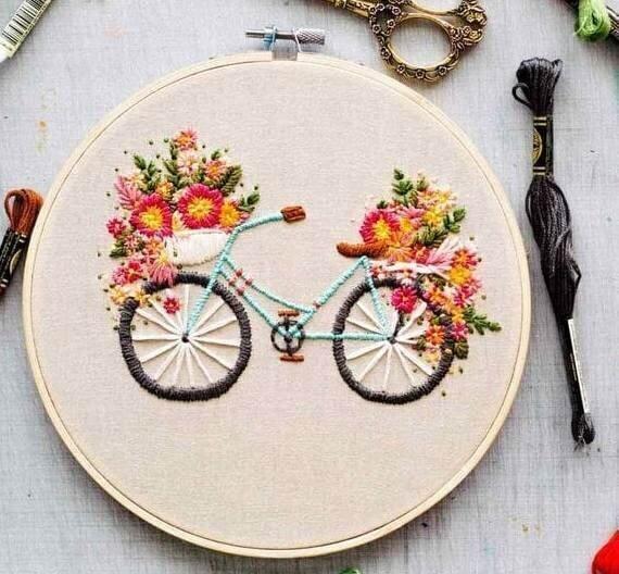 Hand Embroidered Decorative Frame - Cycle & Flower Embroidery Hoop Wood Decorative Display Frame - Wall Hanging - Modern Fiber Art - Embroidery Hoop - Wall Decor - Mother's Day Gift