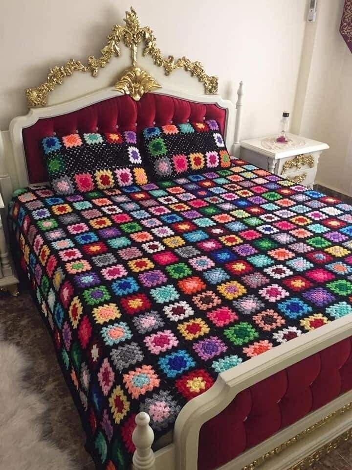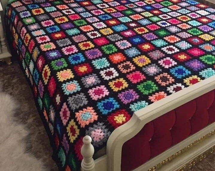 Handmade Crochet Bed sheet, Crochet Afghan Blanket, Granny Square Afghan, Granny Square Bedspread Throw, Knitted sofa blanket, large crochet bedcover, hand knitted