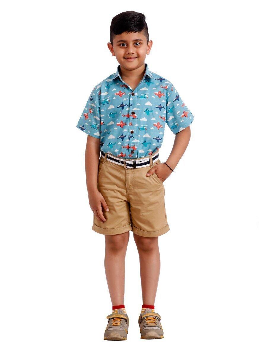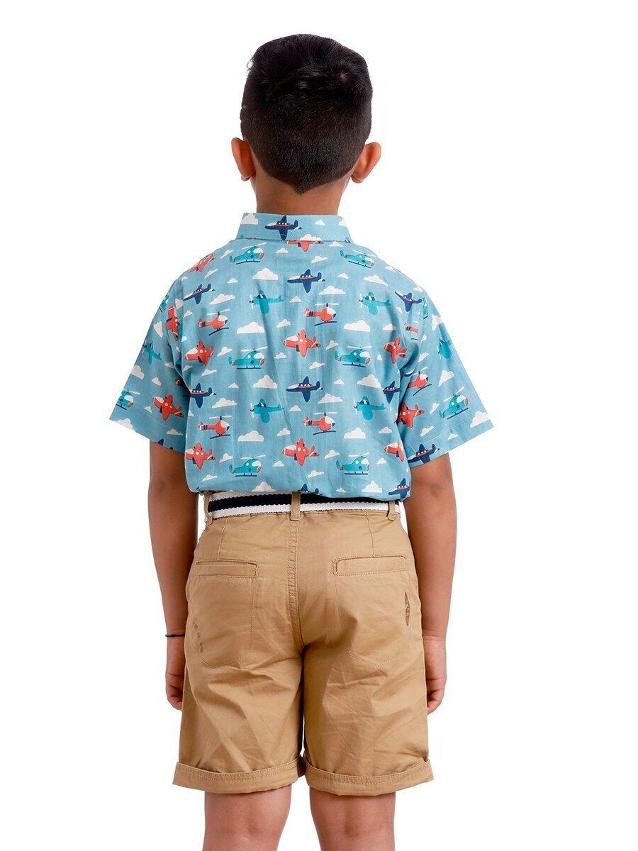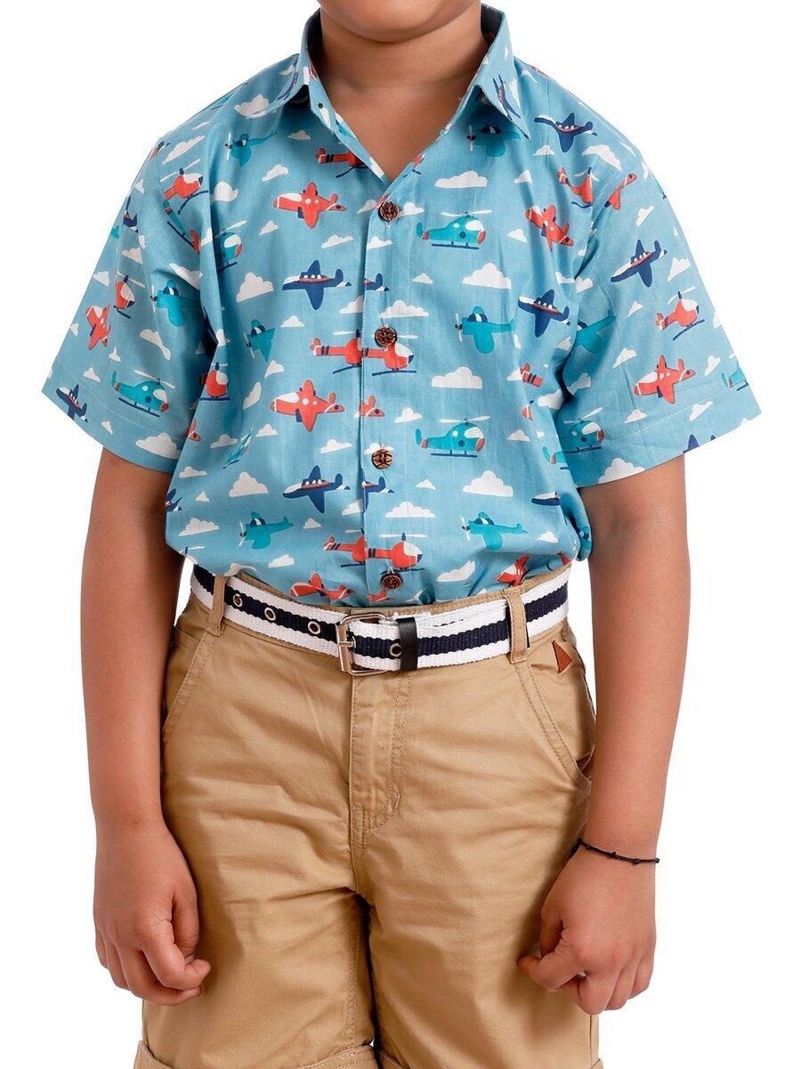 Summer Clothing for Boys/Regular fit Half Sleeves Spread Collar Graphic Pattern Casual Summer cotton Shirts for Boys/1 to 4 years
