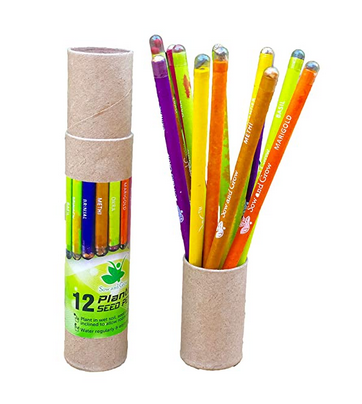 - Set of 12 Plantable Seed Pencils with Re-usable Pencil Box