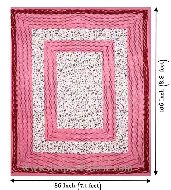 Floral Double Bedsheet Pink Color Dotted Border with 2 Pillow Covers Indian Handmade Set Of 3 PIECE