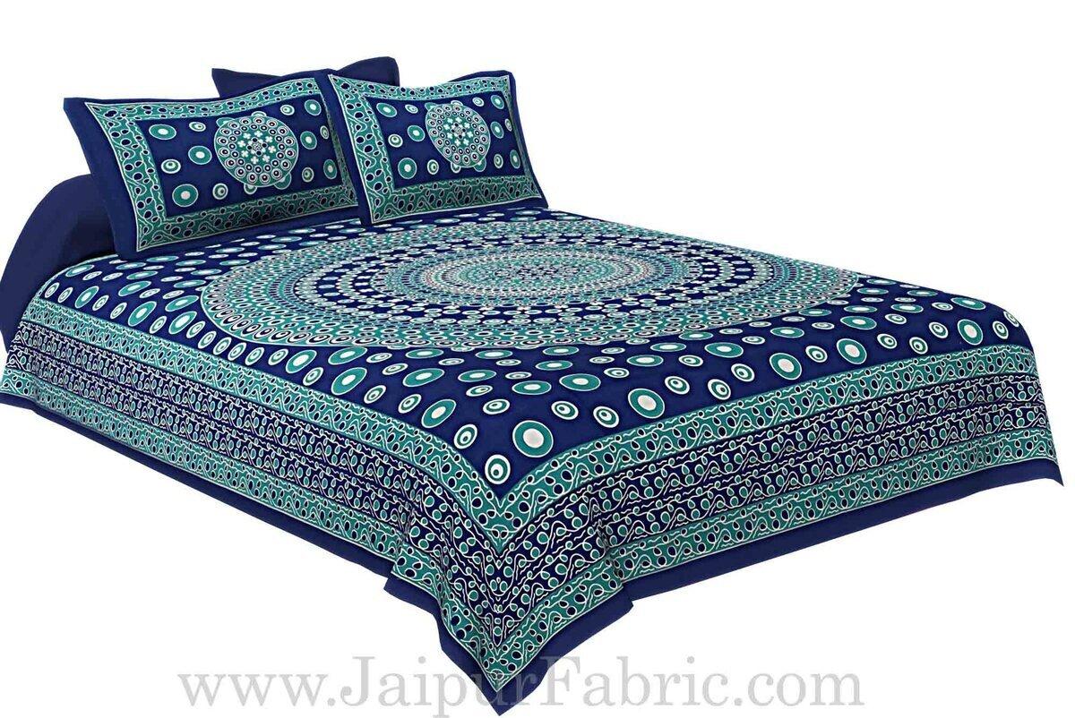Double bedsheet Blue Color Rangoli Pattern Smooth Touch With 2 Pillow Cover Bedspread | 100% Cotton Bed Linens Rangoli Pattern